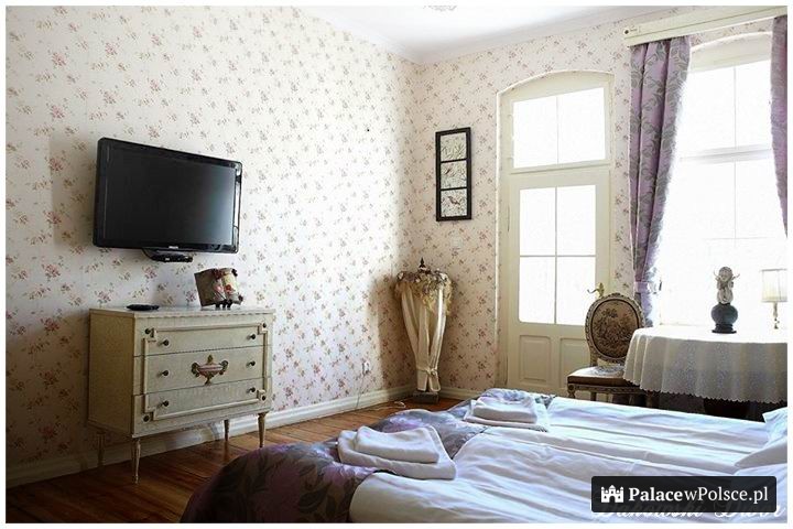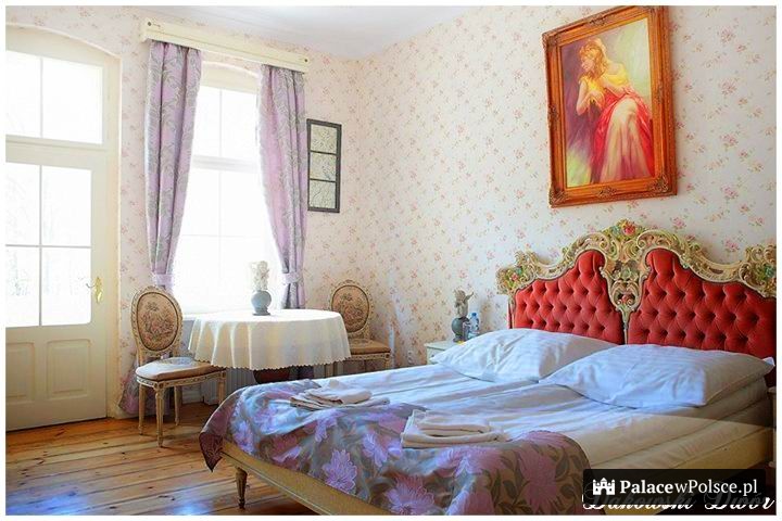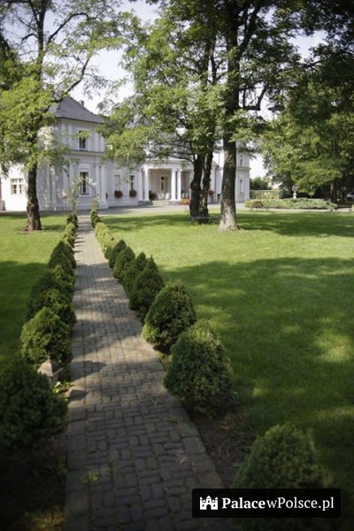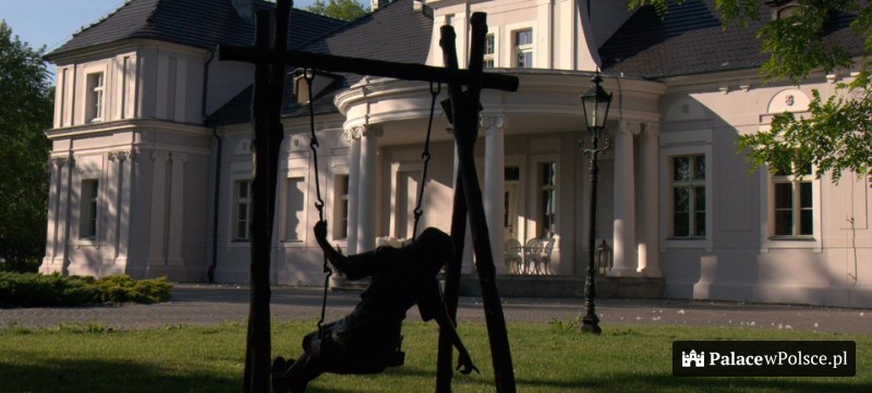 Po obu stronach pałacu znajdują się kolumnowe ganki: od północy półkolisty, od południa kwadratowy. Od 1932 roku do wybuchu II wojny światowej dwór należał do Anieli z Mielżyńskich. Po latach popadania w ruinę, w 2000 roku zaczęła się jego odbudowa. Obecnie stanowi jeden z najpiękniejszych tego typu obiektów w Polsce. Na niespełna 3 hektarowym terenie dworu, znajduje się ogród i park z zachowanym unikatowym drzewostanem z XIX wieku.